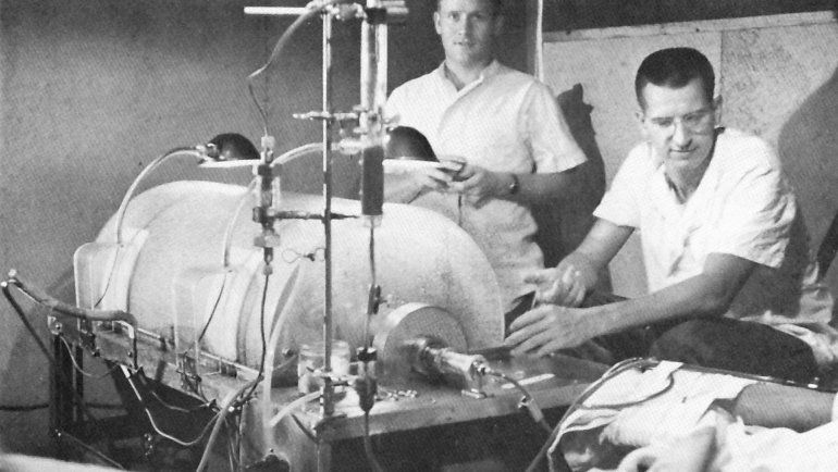 Akut dialys under Koreakriget (1952) med Kolffs roterande trumnjure.