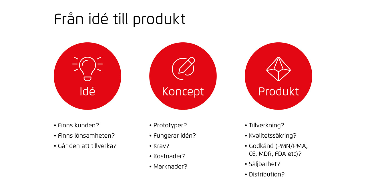 För att förverkliga en produktidé behöver den utvecklas. Om man inte har den kompetensen inom företaget behövs en partner som kan hjälpa till med produktdesignen, funktionaliteten, ritningar med mera. Dessutom behövs kunskap om vad som behövs för att uppfylla lagar och förordningar.