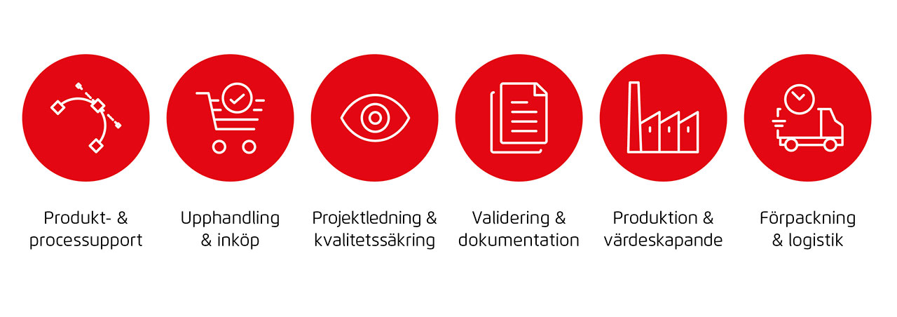 AMB:s erbjudande sträcker sig från att ta emot en förfrågan och att bedöma om den passar vår kompetens och utrustning till att sköta en fungerande distributionslogistik efter tillverkningen.