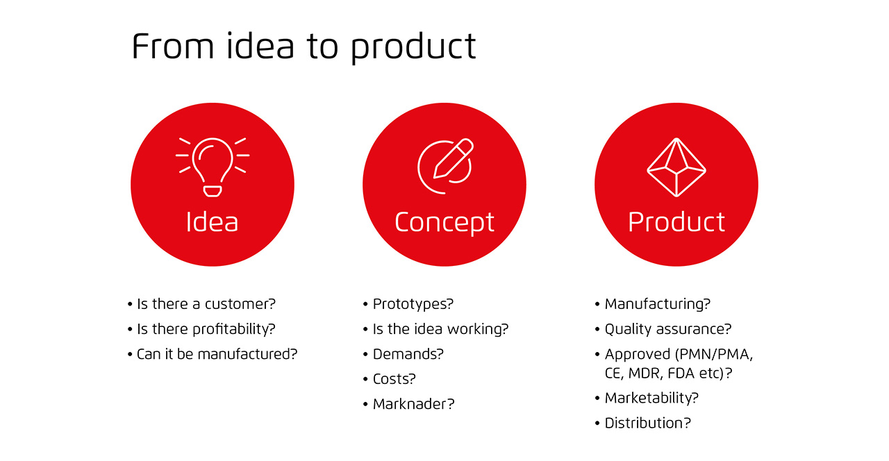 To realize a product idea, it needs to be developed. If you do not have that competence within the company, you need a partner who can help with product design, functionality, drawings, etc. In addition, knowledge is needed about what is necessary to comply with laws and regulations.